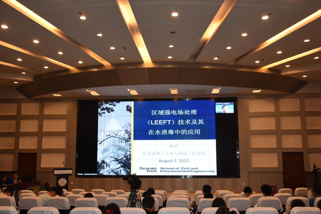 美国佐治亚理工学院谢兴助理教授做了题为“区域电场处理(LEEFT)技术及其在水消毒中的应用”的特约报告。报告介绍了电场处理在水消毒中应用的发展历程、电极材料的选择、区域强电场对水体中微生物的灭活效果、区域电场在水处理中的优势和挑战。谢教授强调区域强电场处理技术对水的消毒作用是电物理效应,而不是电化学效应,主要是依靠区域强电场对微生物生物膜的穿孔作用,灭活水体中的微生物。区域强电场对污水的消毒处理作为一种新生的水处理技术,在未来将会得到广泛应用,目前,电极的选择是区域电场处理技术在水消毒应用中的决定性因素。