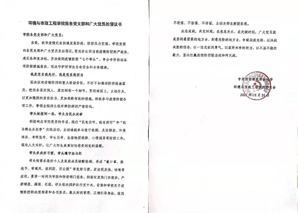 疫情就是命令,防控就是生命线。学院充分发挥基层党支部的战斗堡垒作用和党员的先锋模范作用,让党旗在防控斗争第一线高高飘扬,发布了《9001cc金沙以诚为本致各党支部和党员的倡议书》,从各年级各宿舍楼内召集党员干部,组成党员先锋队。负责完成所在宿舍楼所辖学生宿舍的每日卫生消杀以及通风卫生监督;佩戴党徽,组织好学院学生每轮次的核酸检测,做好现场的组织和防疫要求提醒;引导同学们稳定情绪、增强信心,全面科学正确对待疫情,不信谣、不传谣,耐心细致地做好思想引导和科普宣传,引导学生正确理解、积极配合、科学参与疫情防控,及时将收集的疫情防控信息上报学院。