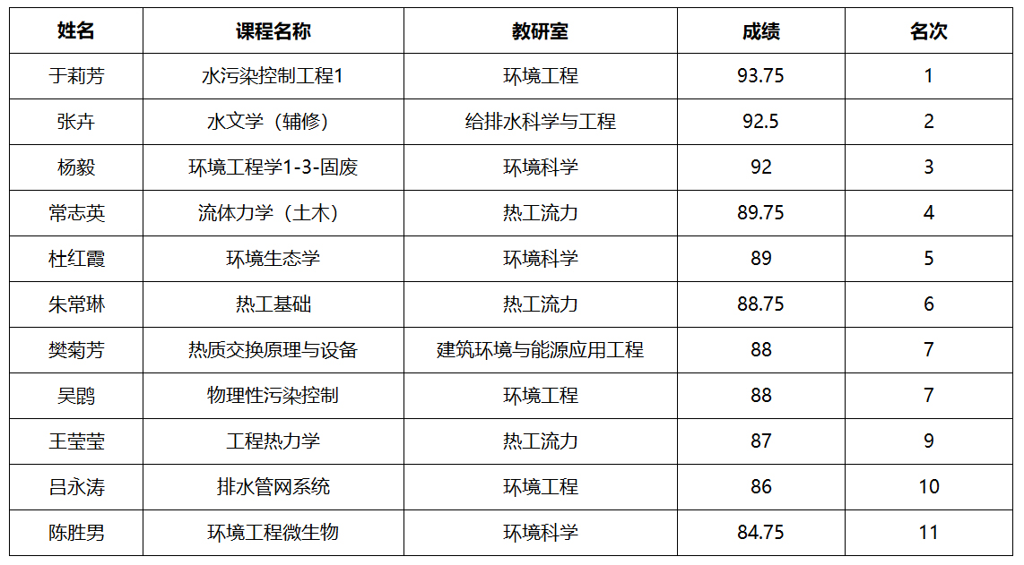 根据校教师发展中心、教务处、人事处《关于开展第三届教案检查及优秀教案展评活动》的文件精神,学院于11月12日聘请了相关专家对教研室自查和学院组织督导组检查中,初部遴选出的11份教案进行评优,经过各位老师答辩,评委现场打分,评选出一等奖1名,二等奖2名,三等奖3名,优秀奖5名,其中,第一名和第二名推荐参评校第三届优秀教案评选。现将评选结果予以公示,如教师对评选结果有异议,请于周三上午12前书面反馈教学办。