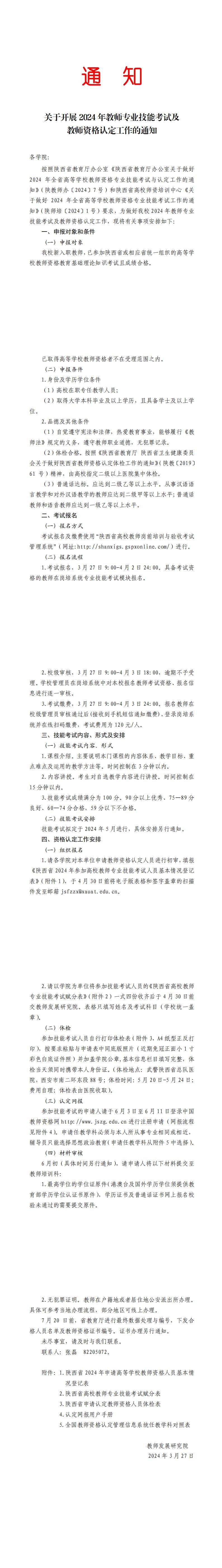关于开展2024年教师专业技能考试及教师资格认定工作的通知