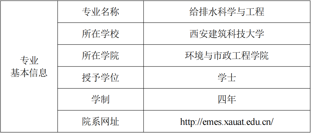 表1 西安建筑科技大学给排水科学与工程专业信息